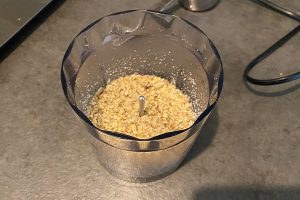 3. Doe de walnoten in een keukenmachine of hak ze heel fijn. Doe ze vervolgens in een bakje en zet opzij.