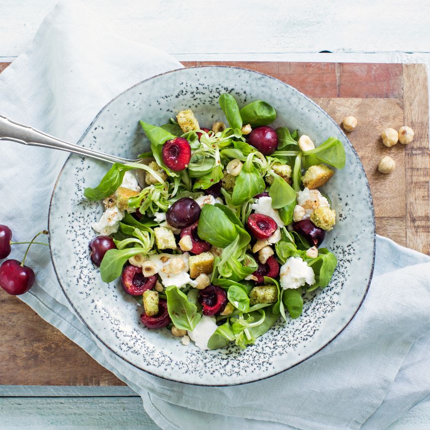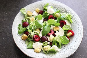 6. Deze salade is het lekkerste in de zomer met verse kersen, maar kan ook met kersen uit pot gemaakt worden. Bedenk wel dat deze vaak op siroop staan en dus extra veel suiker in zit.