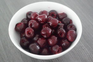 1. Verwijder indien nodig de pitten uit de kersen en snijd ze doormidden.