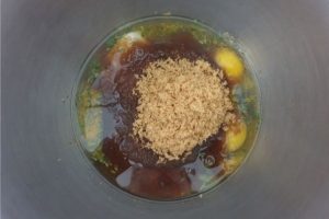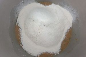 6. Giet het mengsel in de bakvorm en bak voor 50-55 minuten op 160° graden.