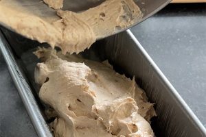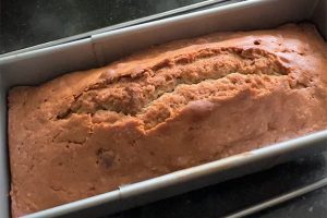 7. Doe het cakebeslag in de bakvorm. Zet de cakevorm ca. 60 -70 minuten in de oven tot hij mooi gerezen en gaar is. Controleer met een prikker of de cake er droog en schoon uit komt.