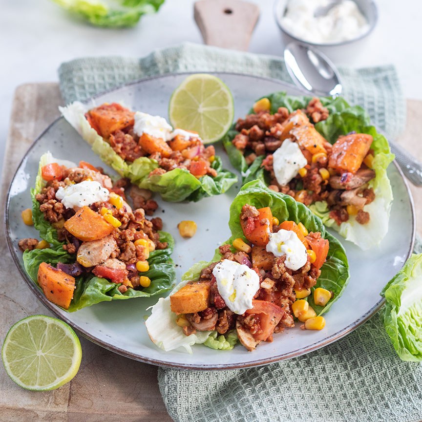 Sla wraps met zoete aardappel