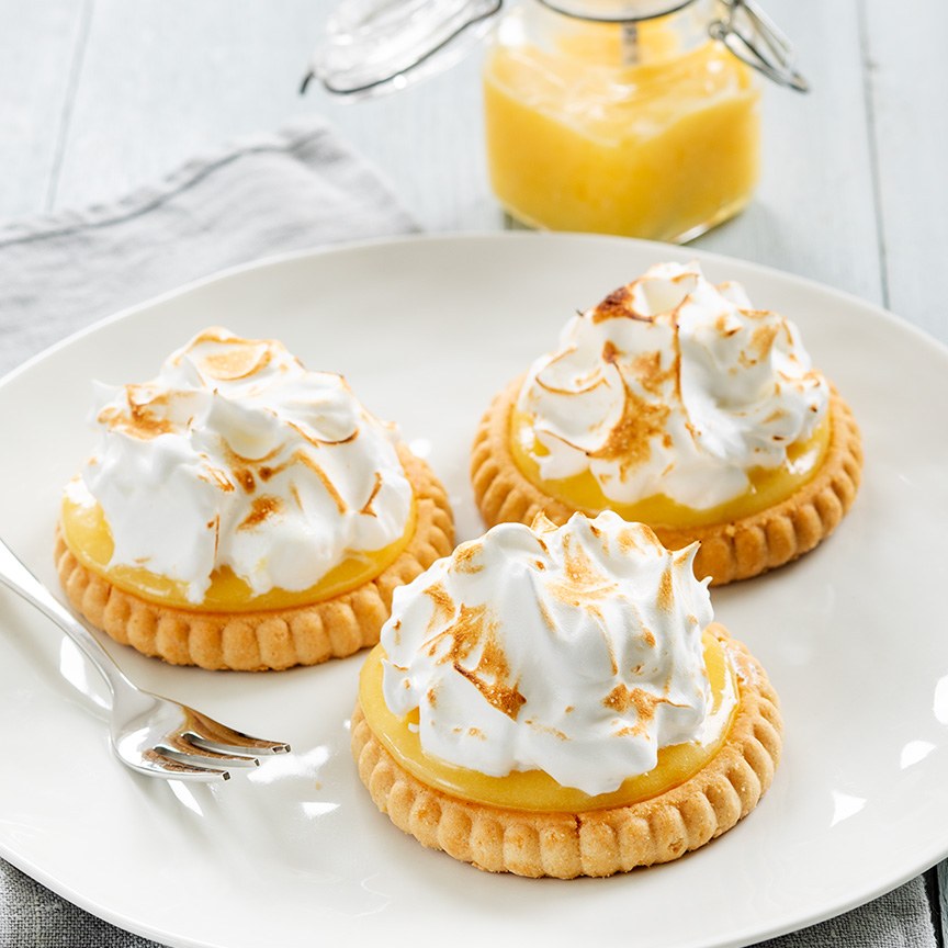 4. Serveer de snelle mini lemon meringue taartjes direct.