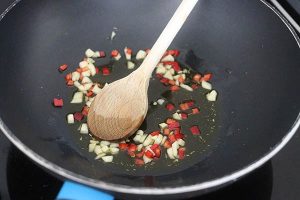 4. De verse rode peper kun je ook vervangen door wat gedroogde chilipeper.