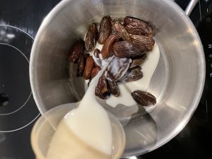 3. Doe de dadels met de melk in een pannetje en laat zacht worden.