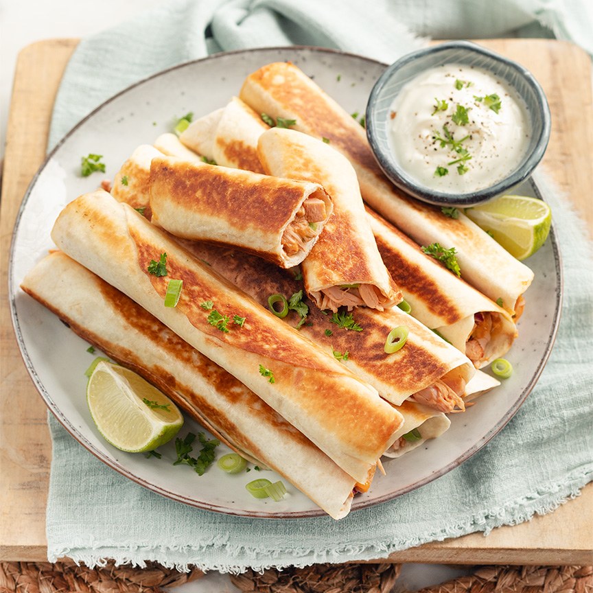 4. Leg wat van het mengsel op een wrap en rol dit op. De wrap kun je eventueel met een klein beetje Griekse yoghurt dichtplakken.