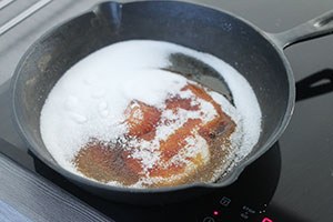 4. Tips: voor de tarte tatin heb je een pan nodig die in de oven kan. Op deze manier kun je de karamel smelten in hetzelfde pannetje waarin de taart gemaakt wordt. Voordat je begint aan de tarte tatin, zorg je dat alle ingrediënten klaar staan. Zo kun je snel werken en zal het nagerecht zeker niet mislukken.