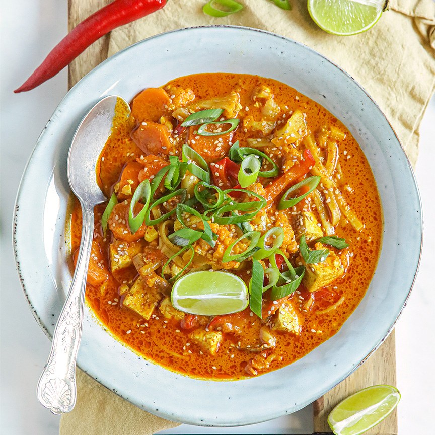 Thaise rode curry soep met noedels