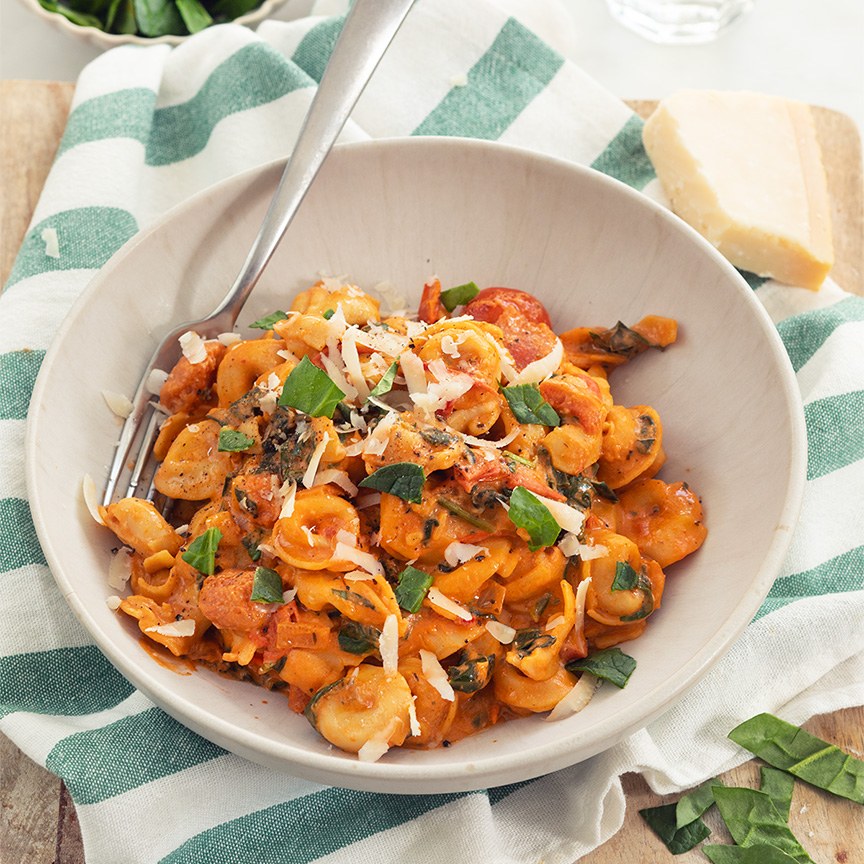 1. Kook de tortellini beetgaar volgens de verpakking.