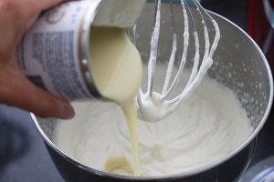 2. Giet de gecondenseerde melk er bij en mix er door.