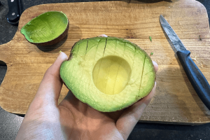 5. Snijd de avocado in blokjes.
