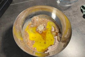 3. Zet een steelpan op het vuur en smelt de plantaardige boter. Giet dit daarna in een aparte kom.
