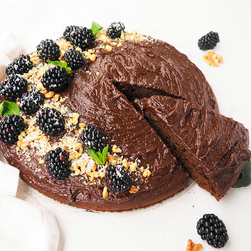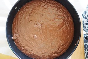5. Bekleed een springvorm met bakpapier. Giet het beslag erin en zet in de oven voor circa 35 minuten. Controleer met een saté prikker of de taart gaar is. Laat de taart volledig afkoelen. Dit duurt ongeveer 45 minuten.