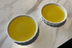 2. Giet het mengsel in 4 ovenbestendige schaaltjes. Zet ze daarna in de koelkast en laat ze minimaal 2 uur opstijven.