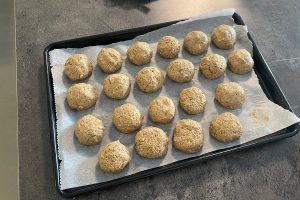 8. Draai van het mengsel balletjes en leg ze een voor een op de bakplaat.