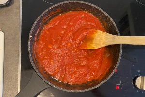 11. Maak ondertussen de tomatensaus.