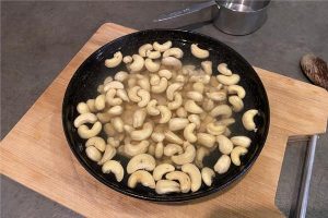 1. Doe de cashewnoten in een kom en giet er water bij. Laat de cashewnoten minimaal 3 uur weken, voordat je verder gaat met het maken van de saus.