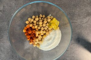 7. Tip: voor een meer crunchy effect kun je de kikkererwten van te voren roosteren.
