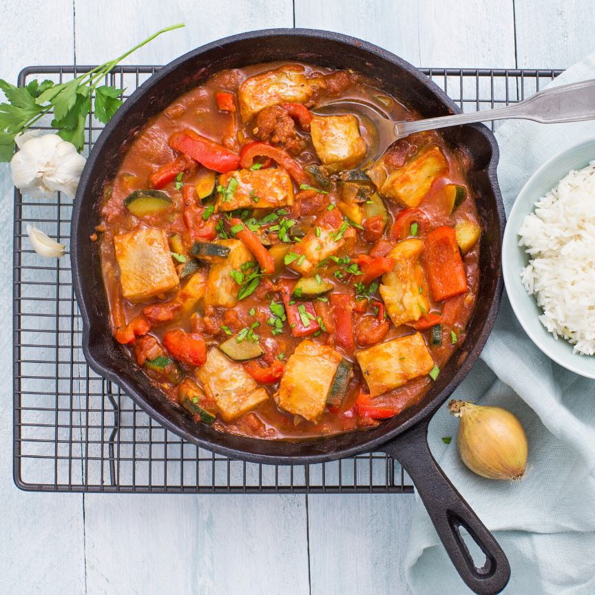 7. Serveer de rijst met de visstoof.