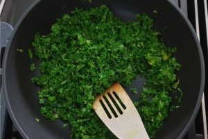 7. Bak de boerenkool in een beetje olijfolie totdat het lichtjes geslonken is.