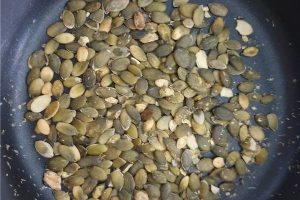 10. Rooster optioneel de pompoenpitjes totdat ze lichtjes beginnen te poppen.