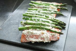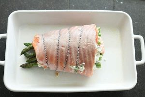 Zalmrollade met groene asperges