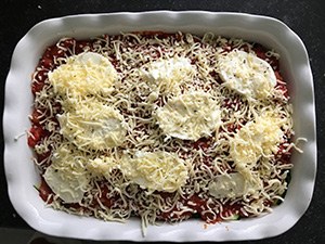 Duurde wel lang om alle groenten te snijden maar wel erg lekker. Ook met maar 2 bollen mozzarella. (Grotere bollen). Erg aan te raden. Volgende keer probeer ik het met pompoen ertussen.
