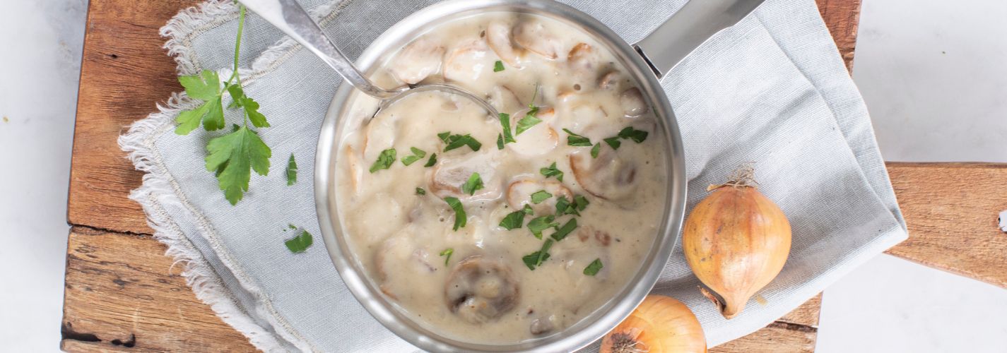 Dit recept voor champignonsaus is een klassieker die voor mij nooit gaat vervelen. Dit is een saus die je ook vaak kant-en-klaar in de winkel ziet liggen, maar geloof mij, als je deze eenmaal een keer zelf maakt wil je niet anders meer! Met maar een paar ingrediënten zoals gebakken champignons, ui, bloem en crème fraîche maak je super simpel een heerlijk romige champignonsaus. Deze champignonsaus maak je gemakkelijk zelf en zet je al in 20 minuten op tafel.