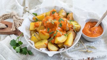 – Tapas: kleine hapjes zoals patatas bravas (gebakken of gefrituurde aardappeltjes met pittige saus) en albondigas. Kijk hier voor de lekkerste tapas recepten.