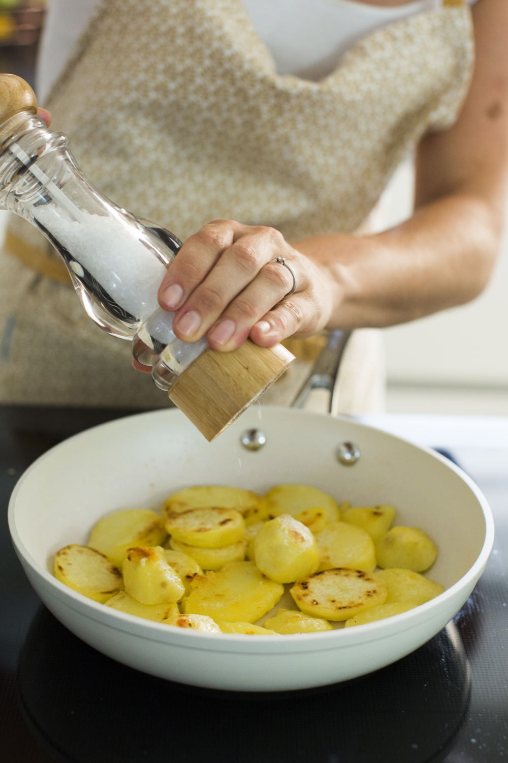 - Zet na ca. 10 minuten het vuur nog even hoog en bak de aardappeltjes tot ze een lekker krokant korstje hebben. Voeg op het laatst ook nog een snuf (zee)zout toe.